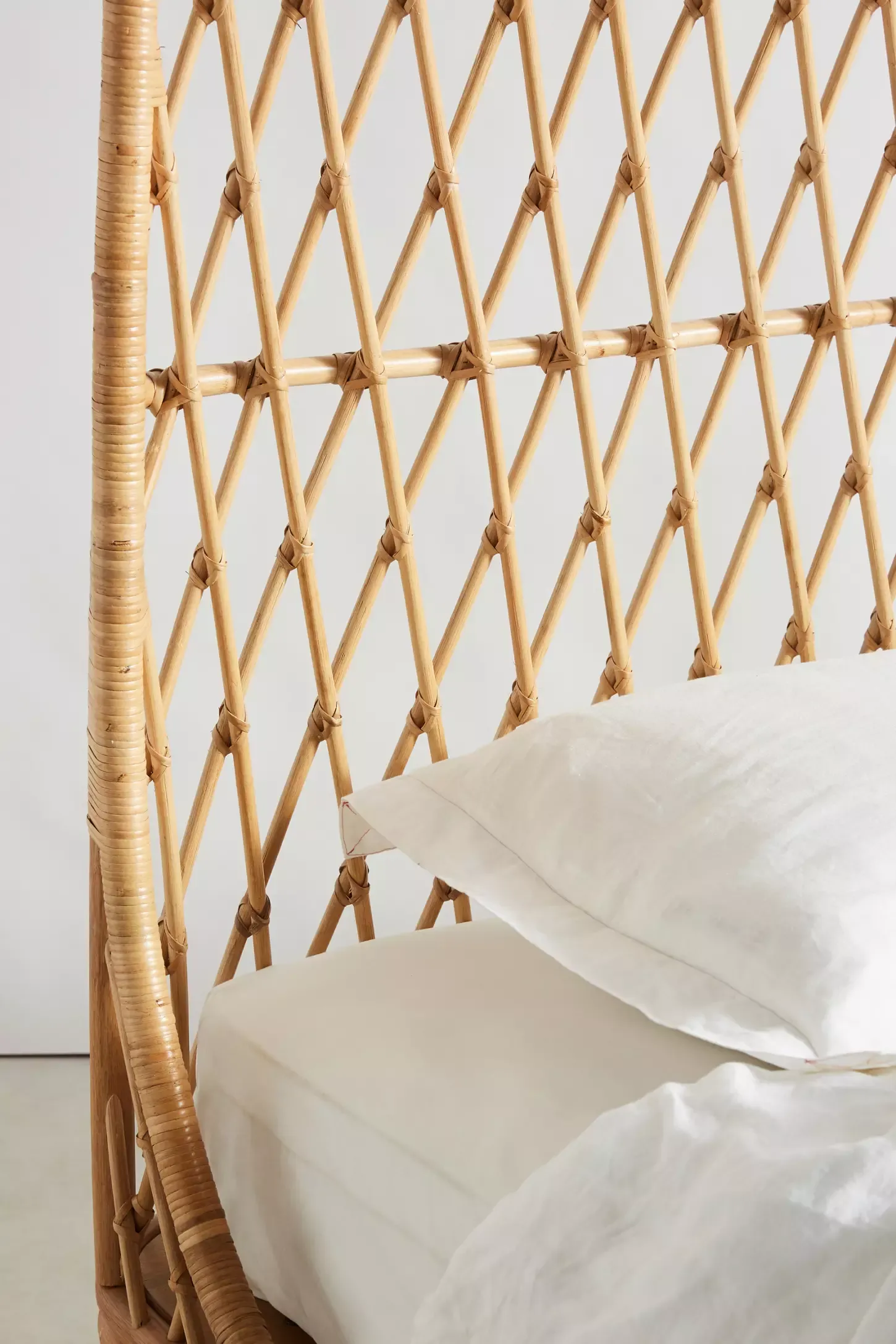 Được tạo thành từ những thanh mây bền tự nhiên, chiếc giường cong này gợi nhớ đến đồ nội thất thời kỳ Thuộc địa Anh, tạo nên điểm nhấn quyến rũ cho bất kỳ phòng ngủ nào mà không chiếm quá nhiều trọng lượng thị giác. Mây đan chéo tạo nên một tán cây nhẹ, mang đến cho bạn cảm giác vừa được bao bọc vừa được đón gió.